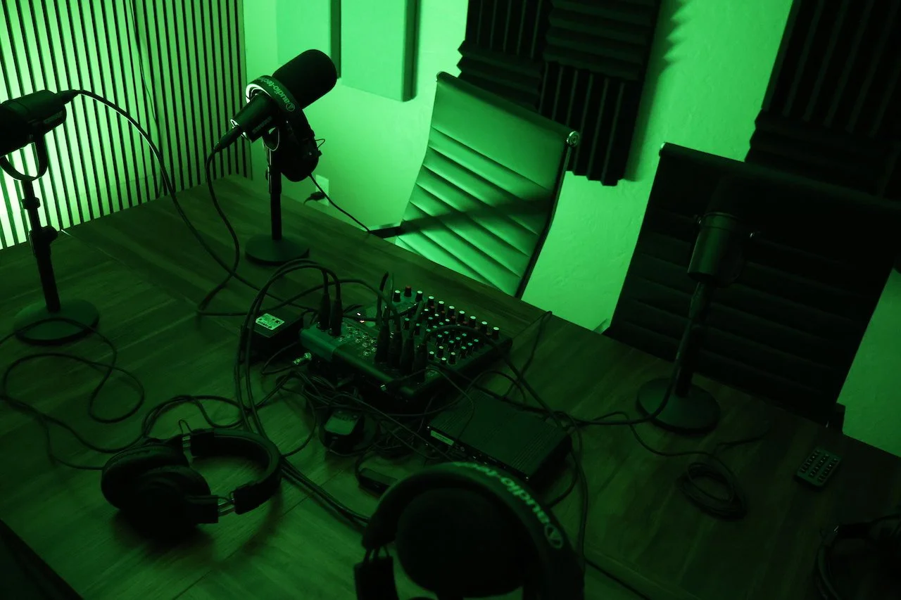 We have 2 rooms that are specifically designed with podcasting in mind. They are equipped to output to any streaming service for any podcast.